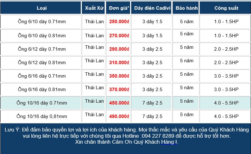 ⚠️ Lưu ý: Bảng giá có thể thay đổi tùy vào thực tế công trình, vị trí lắp đặt, độ dài đường ống và loại máy lạnh sử dụng.