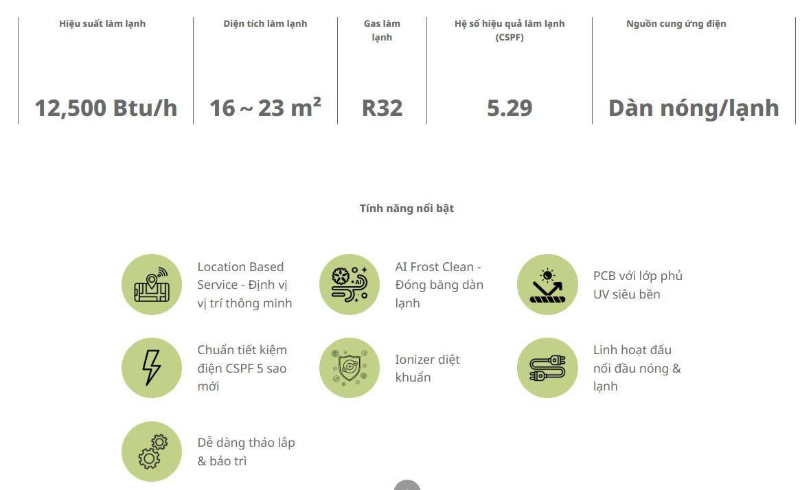 | Hệ số hiệu quả làm lạnh (CSPF) | 5.29 |