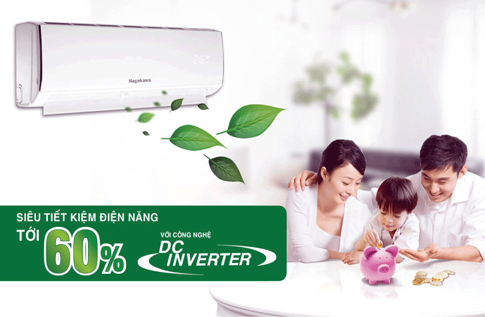 điều hòa nagakawa với công nghệ BLDC inverter với khả năng hoạt động liên tục ở tần số thấp, giảm tốc độ quay của máy nén và quạt gió về mức thấp nhất giúp máy lạnh tiết kiệm đến 62% điện năng tiêu thụ chỉ từ 1kWh/đêm.
